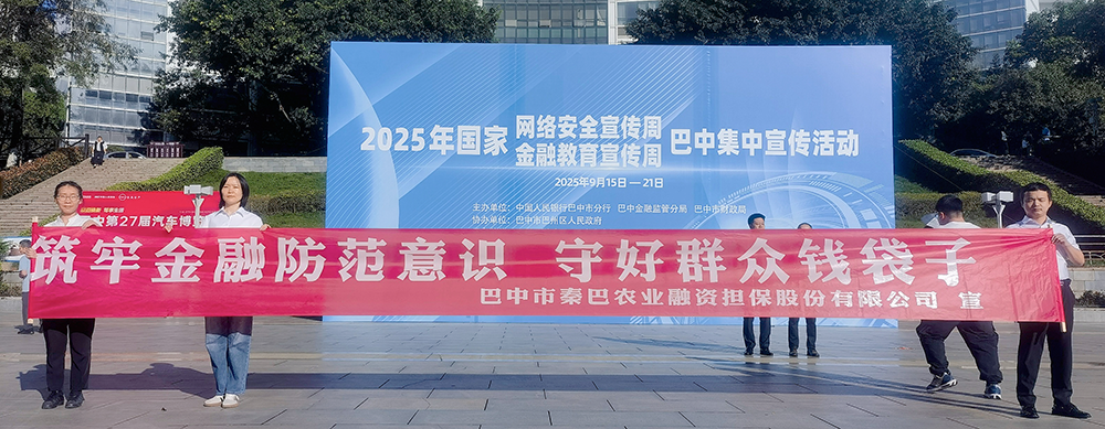 2025年國(guó)家網(wǎng)絡(luò)安全宣傳周/金融教育宣傳周巴中集中宣傳活動(dòng)火熱開展。市秦巴農(nóng)擔(dān)公司主動(dòng)響應(yīng)號(hào)召,圍繞“筑牢金融防范意識(shí),守好群眾錢袋子”核心宗旨,聚焦金融領(lǐng)域安全,開展多形式宣傳活動(dòng),助力提升社會(huì)公眾金融風(fēng)險(xiǎn)防范意識(shí)與網(wǎng)絡(luò)安全認(rèn)知水平。